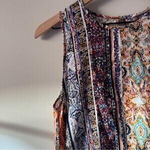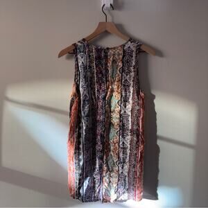 Anthropologie Sophie Rue Bohemian Tank Top High Low Hem Button Keyhole Back boho