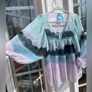 Stunning Anthropologie Sophie Duran silk top. Never been worn, no tags attached. 100% silk. Oversized fit. Beautiful watercolor / tie dye motif.