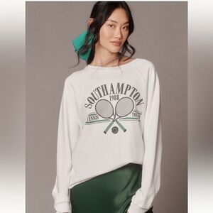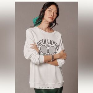 Stay cozy and stylish with this Southampton Tennis graphic sweater. Perfect for casual outings, this white sweater offers comfort and a sporty look.