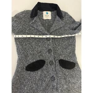 Anthropologie Sparrow Black Velvet Corduroy Trim Elbow Patch Gray Wool Cardigan