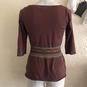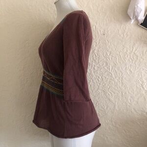 Anthropologie Sparrow Brown Babydoll Sweater Blue Yellow Crochet Vintage y2k