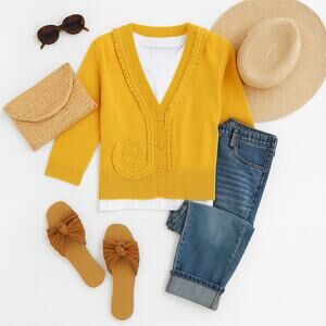 • Rich ochre yellow color — warm, vintage-inspired, and flattering