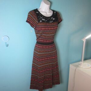Anthropologie Sparrow Fair Isle Slim Knit Dress Lace Detail Size M Colorful Midi