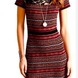Anthropologie Sparrow Fair Isle Slim Knit Size M Midi Dress Lace Panel Back
