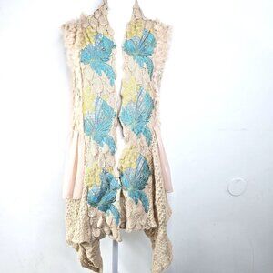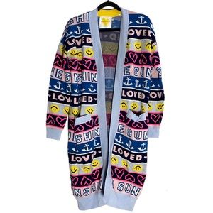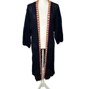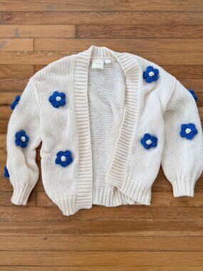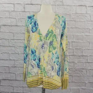 Anthropologie Sparrow Blue Yellow Floral Cinchona Cardigan sweater