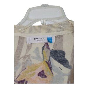 Anthropologie Sparrow Floral Rendering Striped Floral 100% Cotton Cardigan Med