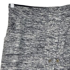 Gray wool knit asymmetric faux wrap skirt perfect for fall and winter with some tall boots! Button closure, one pocket, asymmetrical, wrap