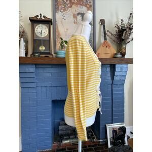 Anthropologie Sparrow M Yellow Striped Sweater Crochet Button Cardigan Y2K