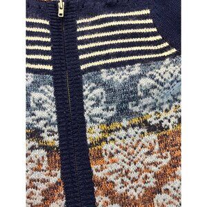 Anthropologie Sparrow Navy Zip Cardigan Sweater Floral & Striped Wool Mohair Sma