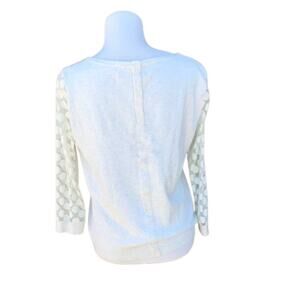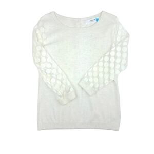 Anthropologie Sparrow Sweater Women's Size M Cream Sheer Lace Polka Dot Sleeves