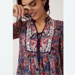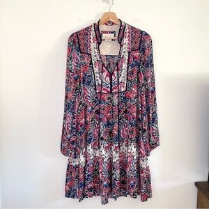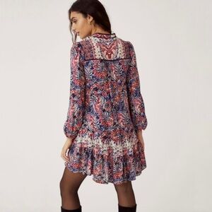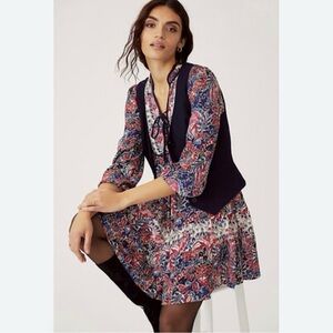 Anthropologie Spliced Tunic Dress Boho Floral Long Sleeve Mini in Multicolor, Size Small.