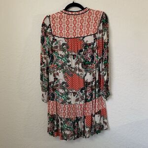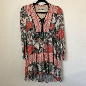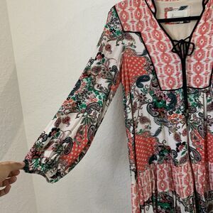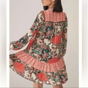 Anthropologie Spliced Tunic Dress Women S Red Green Paisley Floral Boho Preppy
