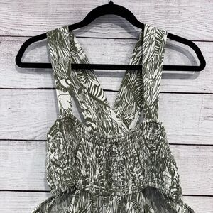 Anthropologie Square Neck Smocked Cut Out Mini Dress Animal Print Green Large