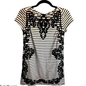 Anthropologie Stamp Black & White Striped w/ Embroidery Mini Dress XS