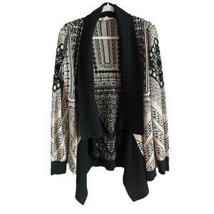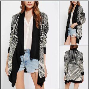 Anthropologie Staring At Stars Waterfall Cardigan Sweater Aztec Black Cream Sz L