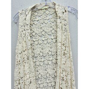 Anthropologie Staring at Stars XS Crochet Open Knit Vest Asymmetrical Beige