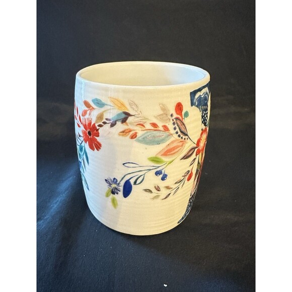 Anthropologie Starla Halfmann Initial L Monogram Mug Bright Floral Design, 13 oz Ceramic Coffee Cup