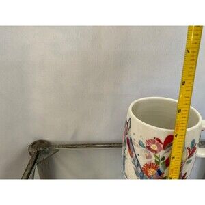 Beautiful pre owned Anthropology Starla M Halfman tea/coffee mug letter M with floral design. No chips, cracks, repairs. This is a pre owned item and has feel / look of pre owned including sticker residue, discolorations, use and usual handling wear.