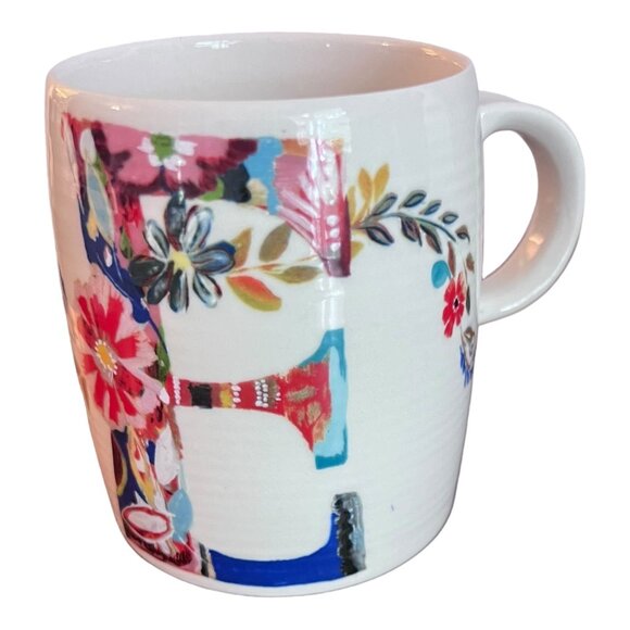 Anthropologie Starla M Halfmann Monogram "E" Coffee Mug Petal Palette Cup