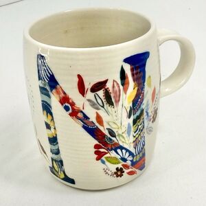 Anthropologie Starla M. Halfmann Petal Palette Monogram Initial “N” Floral Botanical Artisan Ceramic Mug