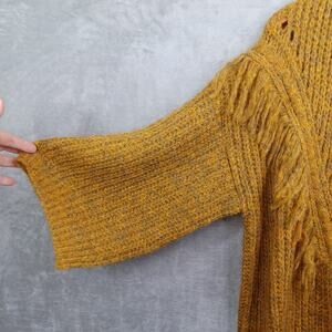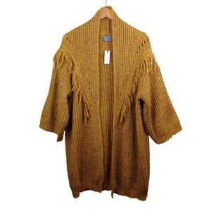 Anthropologie Stevie Boho Fringe Cardigan Sweater Mustard Chunky Oversized OS