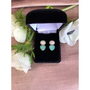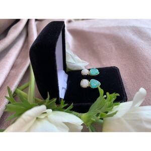 Anthropologie Stone and Druzy Stud Earrings with Gold Tone- Boho Style