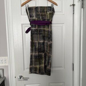 Anthropologie Strapless Dress by Edme & Esyllte Geometric Navy, Green and Purple