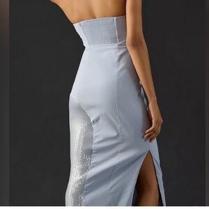 Anthropologie Strapless Slim Midi Dress Sz 6 French Blue Sequin Party Cocktail