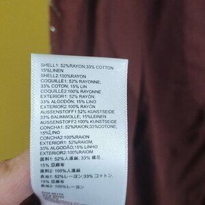 Rayon, cotton and linen, measurements are 19" pit to pit and 18" pit to hem, adjustable straps, v neck, bead embellished, color is brown, super cute, good condition and quality