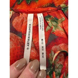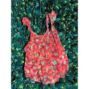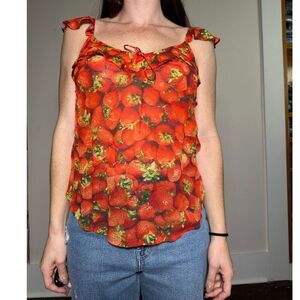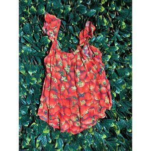 Anthropologie Strawberry Print Blouse Tank Top Chiffon Lightweight Red Size 6