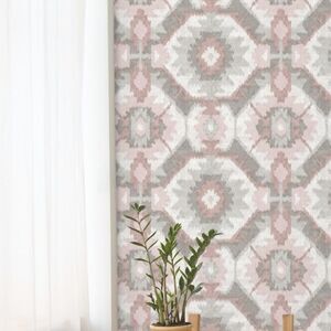 Bring some eye-catching flair to any living space with this striking shibori design, shown here in soft shades of pink, taupe and grey.