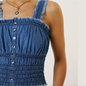 Anthropologie Stretch Rouched Denim Corset Top- Factory Wrapped