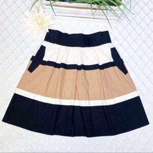 Anthropologie Striped Colorblock Mini Skirt Tan White Black XS