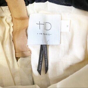 Anthropologie HD in Paris Veldt Stripe A Line Mini Skirt. Black, tan and cream color block design with pockets. Fully lined, thick elastic waist with a zipper in back. Easy cute style for spring and summer! Like new. Size XS.