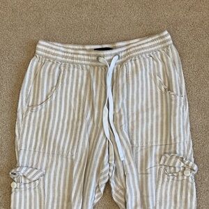 Stylish striped pants. Comfortable fit. Drawstring waist. Perfect for casual outings.
