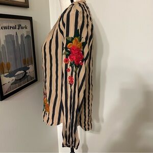 Anthropologie Striped Embroidered Blouse by Akemi + Kin Size XS