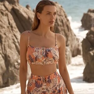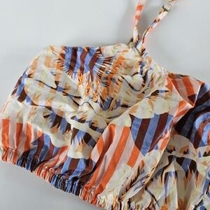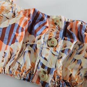 Anthropologie Striped Floral Button Front Cropped Tank Top