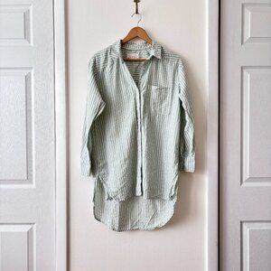 Anthropologie Striped Longline Button Down Tunic Shirt