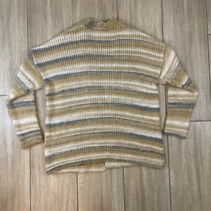 Anthropologie Striped Open Knit Cardigan Sweater Beige Gray Women’s Small