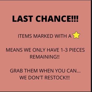 Any items you see listed with a ⭐️ means that there are only 1-3 pieces left of the style. We don't ever restock on previous styles so make sure to grab what you like while it's here!! :)