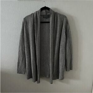 Has a few small pulls but in otherwise good preowned condition. Open front. Lightweight striped knit. From Anthropologie.