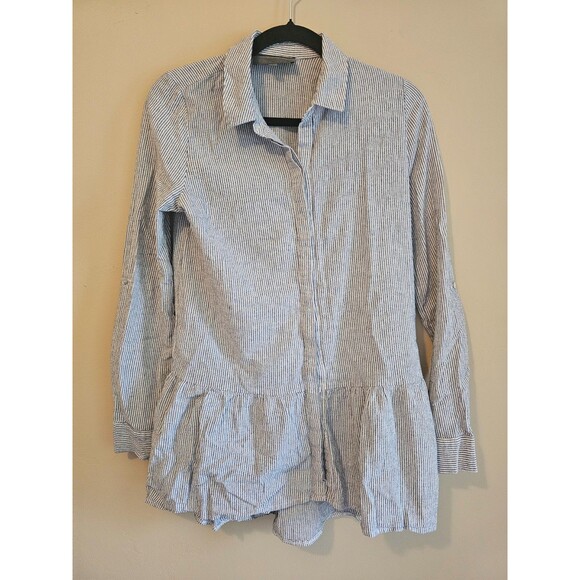 Anthropologie Sunday In Brooklyn Top Med blue striped flare waist