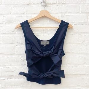 Anthropologie || Sunday in Brooklyn Bow Front Tank Top Ribbed Navy Small NWT