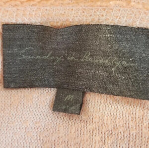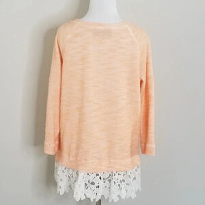 Sunday in Brooklyn for Anthropologie Citrus Lace pullover sweater in beautiful peach color. 3/4 sleeves. White floral lace hem. Polyester & Cotton blend. Excellent preowned condition.