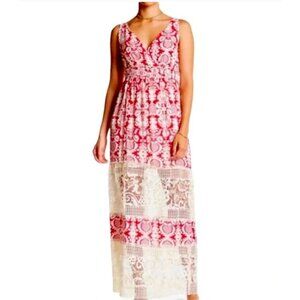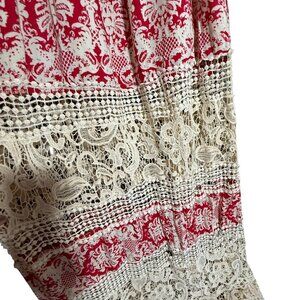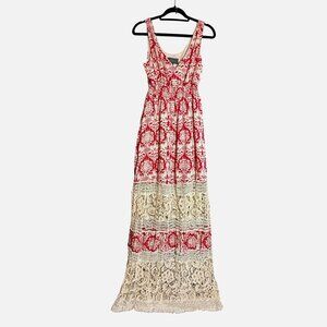 Anthropologie Sunday in Brooklyn Lace Maxi Dress Women's Medium Beige Red Crochet