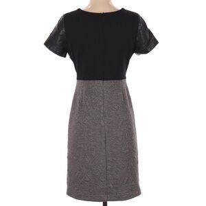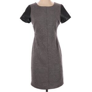 Anthropologie Sunday in Brooklyn Quilted Dress Faux Leather Sleeves Gray Black Size Small. Great condition see photos for details. Mixed material. Approximate measurements 37” shoulder to hem and 15.5” pit to pit. 50622C