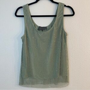 Anthropologie Sunday in Brooklyn Rhinestone Mesh Tank Green NWT Size Small.