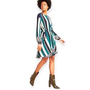 Chic Fit and Flare Green Striped dress