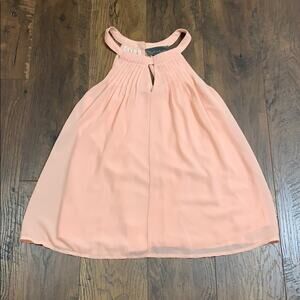 Size S. 100% Polyester. Length shoulder to hem 24 1/2 inches. Armpit to armpit 20 inches. Lined. Soft. Stretchy. Flowy. Stretchy. Dressy. Perfect for Spring. Great condition!