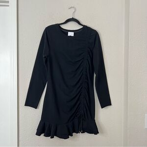 Anthropologie Sundays Ramone Black Ruched Mini Dress Size Medium, Long Sleeve